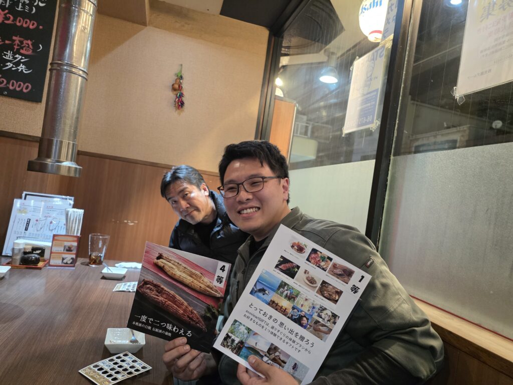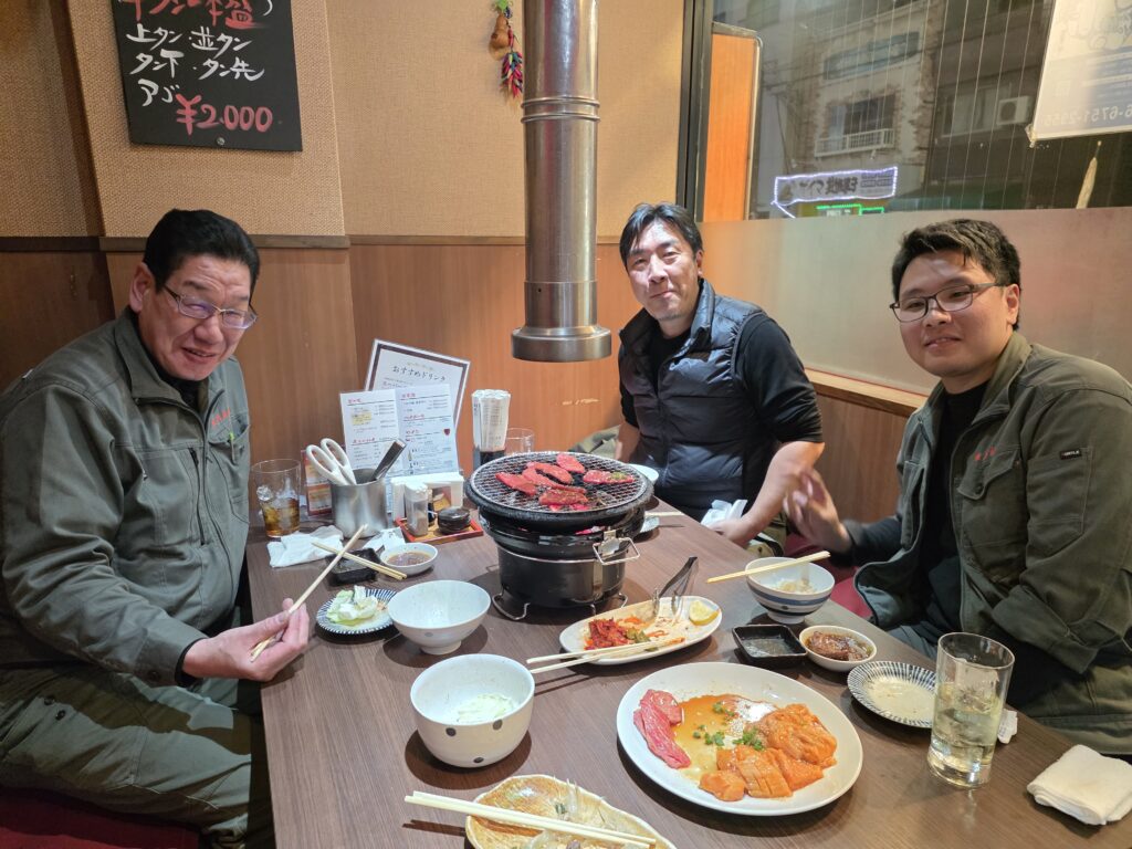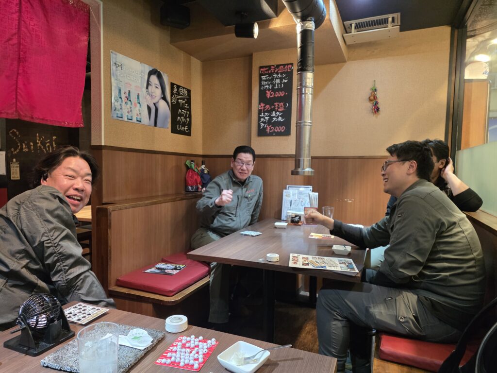 令和7年最後のイベント 忘年会!! 投稿日 2025年12月15日 更新日 2025年12月27日 著者 toyosya カテゴリー 新着情報 毎年恒例「焼肉そがん」さんで忘年会を実施しました! 名物「牛タン一本盛」をはじめ美味しい焼肉をたらふくいただきました。 その後は年に一度のお楽しみ、豪華賞品が当たる★ビンゴゲーム★ 1等賞はアソビューの体験ギフト、その他てっちりセット、牛ステーキセット、うなぎ等々どれが当たってもはずれなし!! みんな笑顔で1年を終えることができました。 また来年も頑張りましょうね~^^ みなさま良いお年を!!
